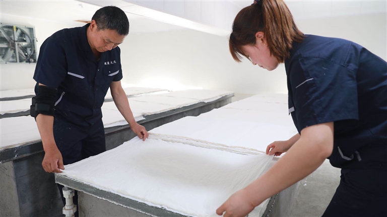 10月9日下午,縣長(zhǎng)吳云忠赴海陽(yáng)鎮(zhèn)凝霜文化發(fā)展公司調(diào)研徽州楮皮紙傳承與發(fā)展工作,縣委常委、海陽(yáng)鎮(zhèn)黨委書(shū)記金學(xué)年,縣委常委、縣政府副縣長(zhǎng)程衛(wèi)華參加調(diào)研活動(dòng)。 吳云忠一行實(shí)地察看了徽州楮皮紙生產(chǎn)工藝流程,認(rèn)真聽(tīng)取企業(yè)負(fù)責(zé)人介紹,詳細(xì)詢(xún)問(wèn)徽州楮皮紙制作工藝